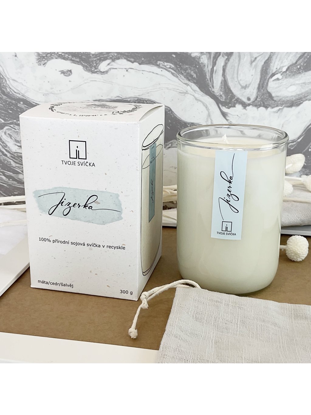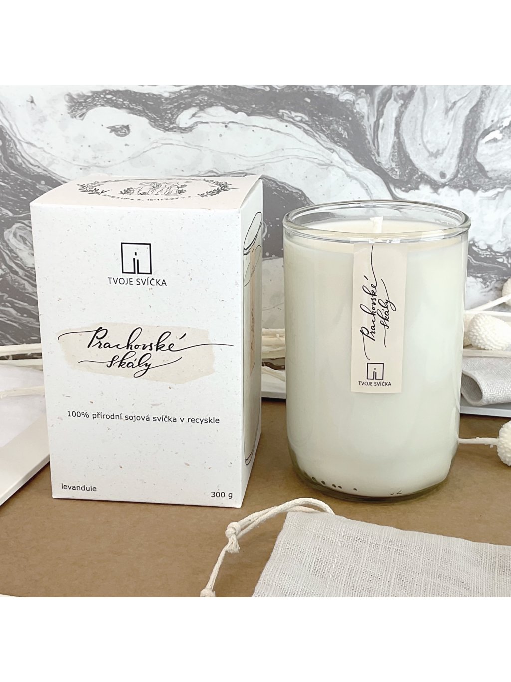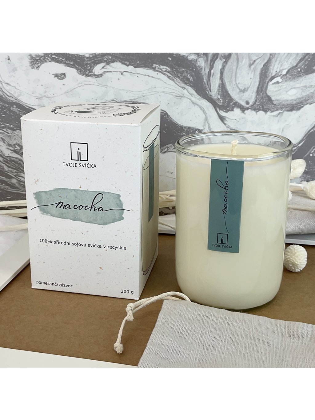 100% přírodní sójová svíčka, ovoněná 100% éterickými oleji a vyrobena ručně ve Středních Čechách.