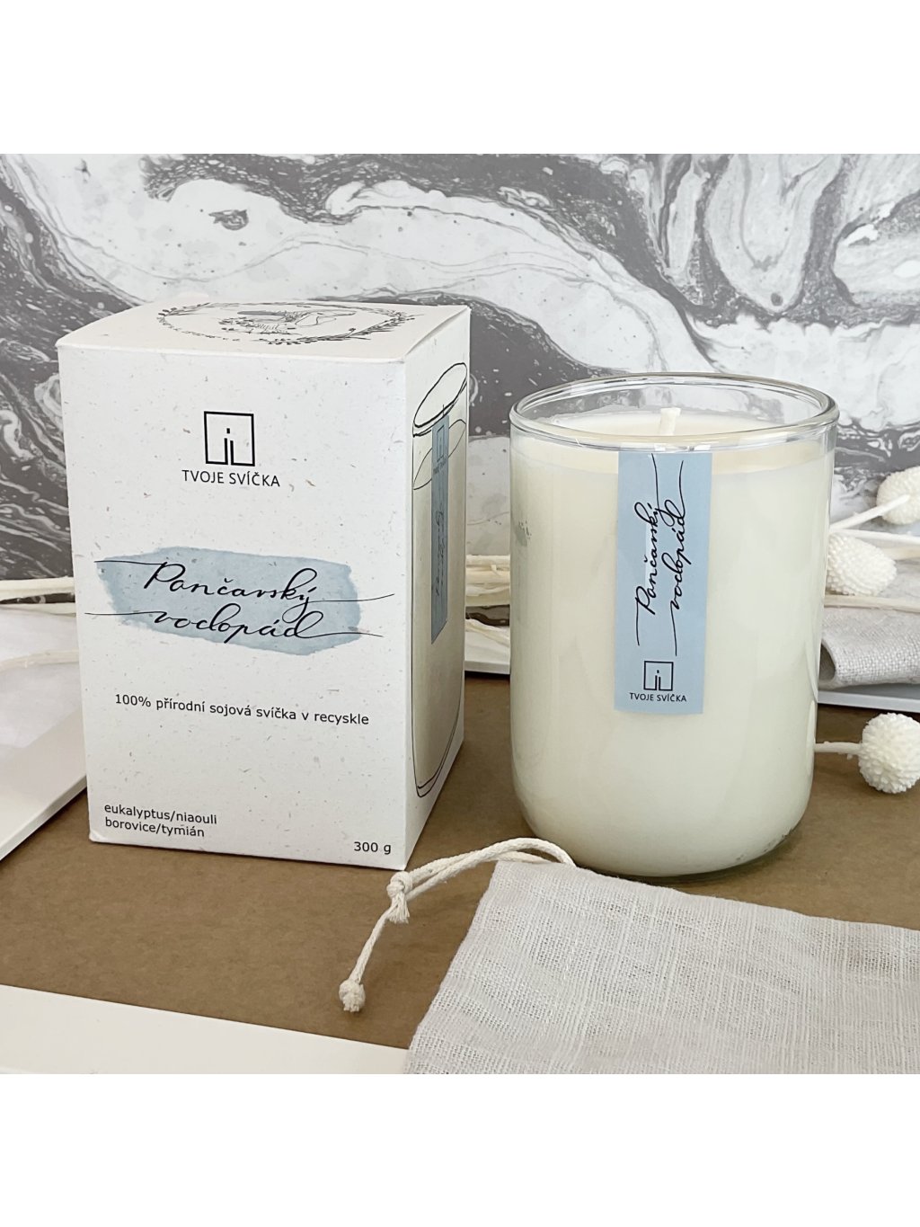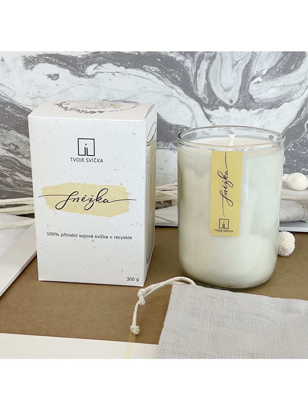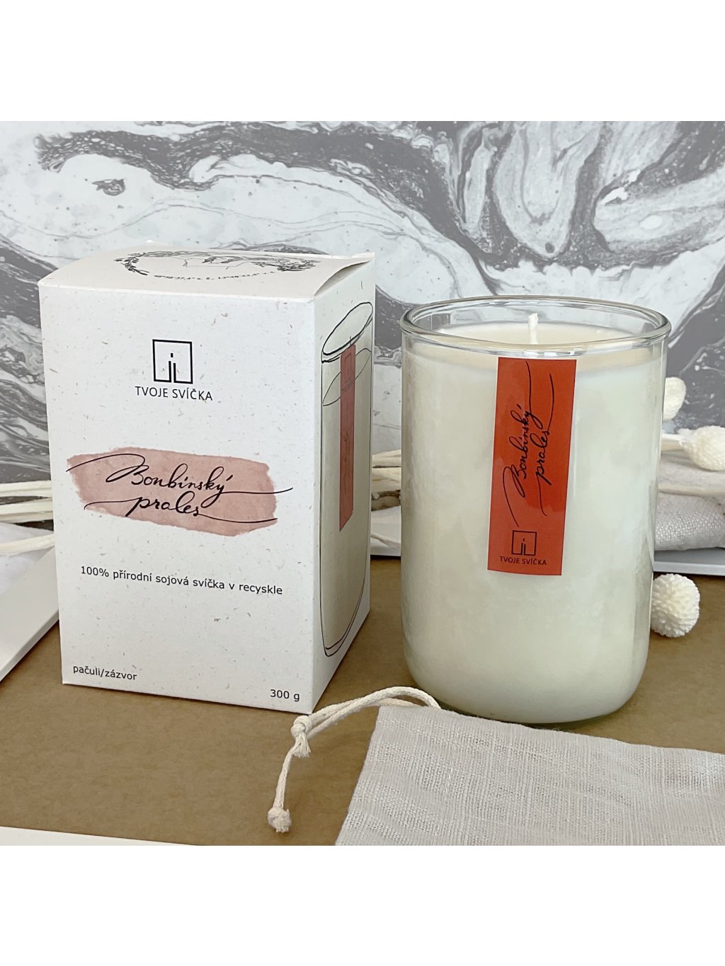 100% přírodní sójová svíčka, ovoněná 100% éterickými oleji a vyrobena ručně ve Středních Čechách.