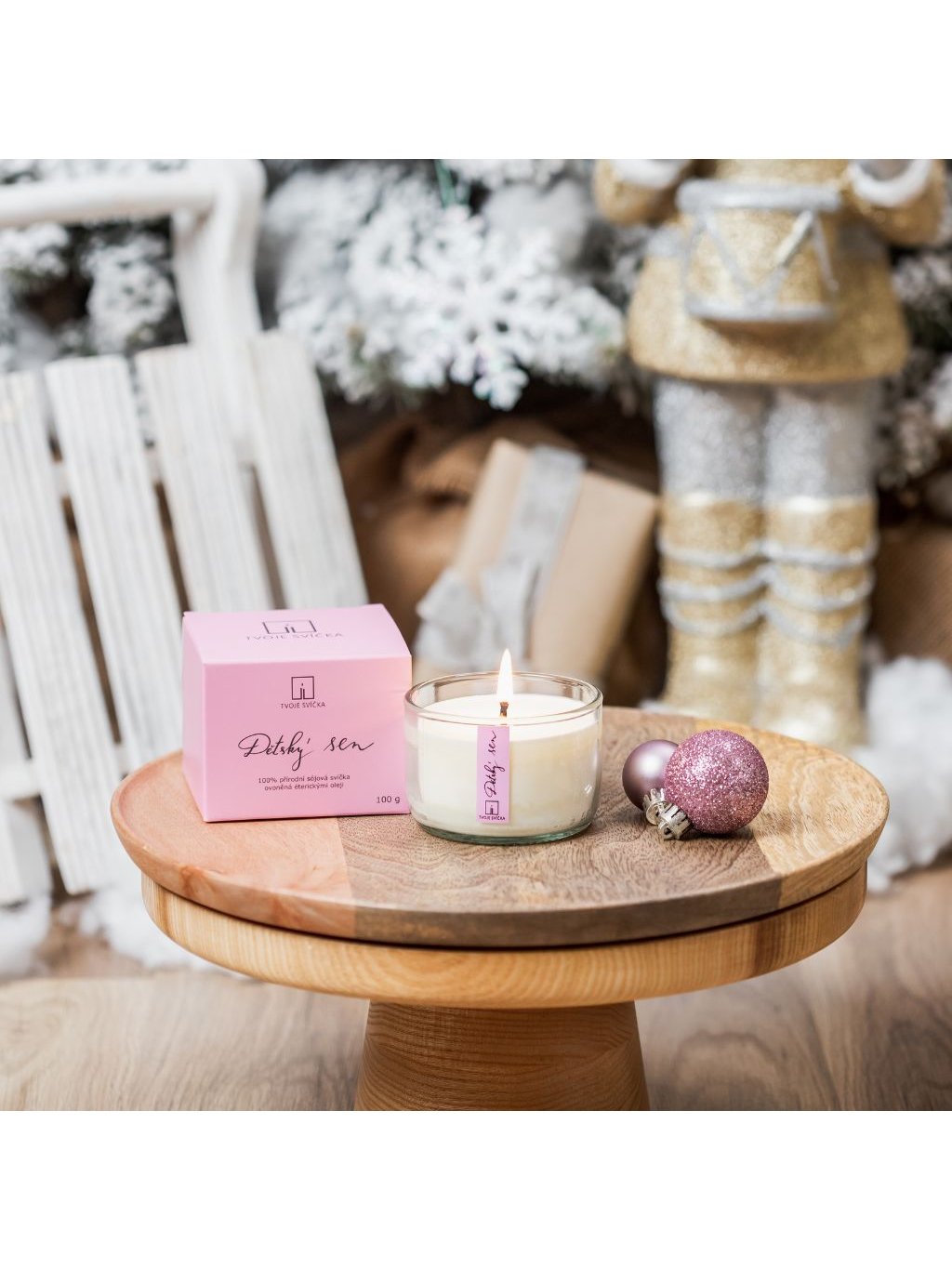 100% přírodní sójová svíčka, ovoněná 100% éterickými oleji a vyrobena ručně ve Středních Čechách.