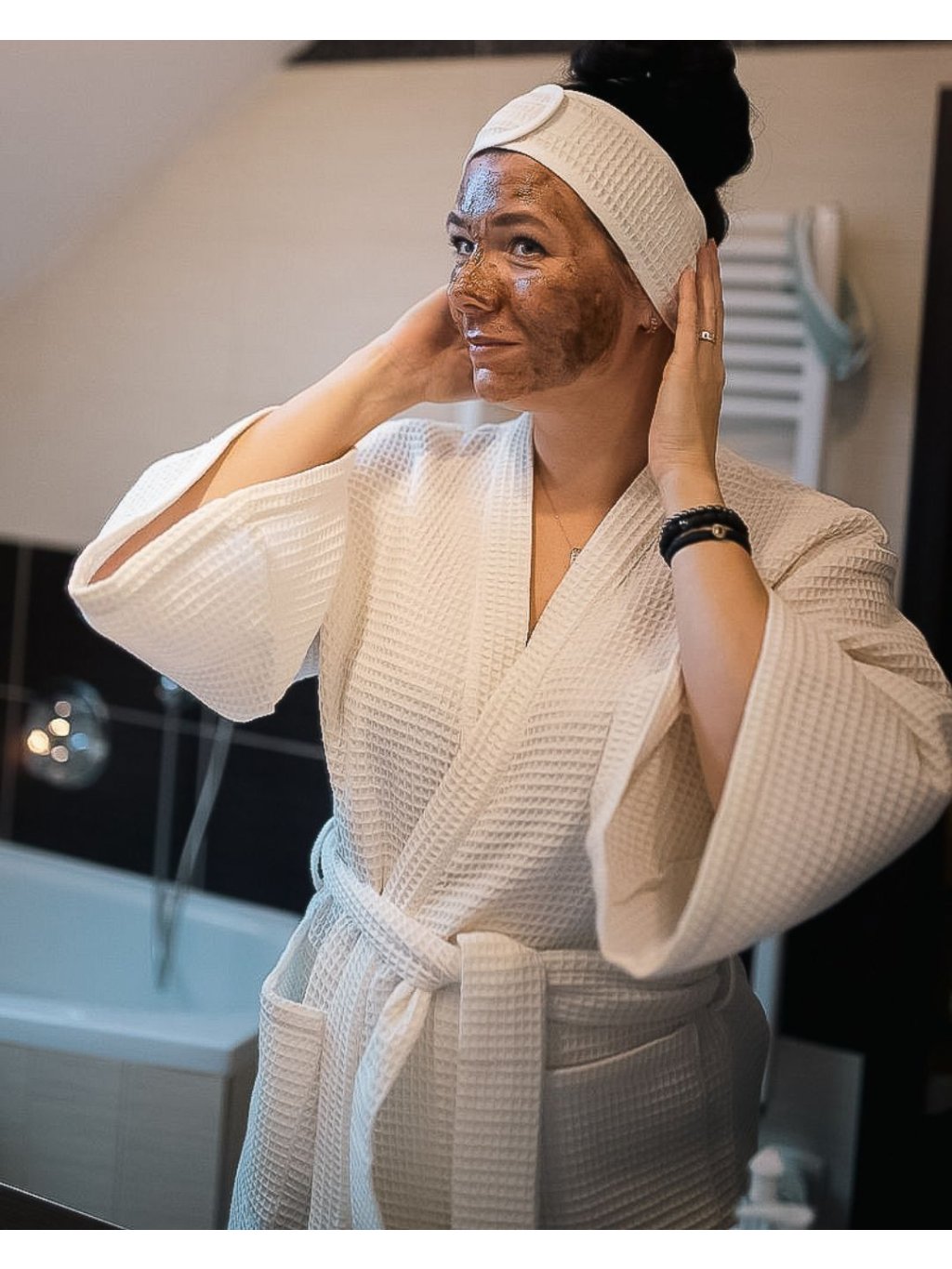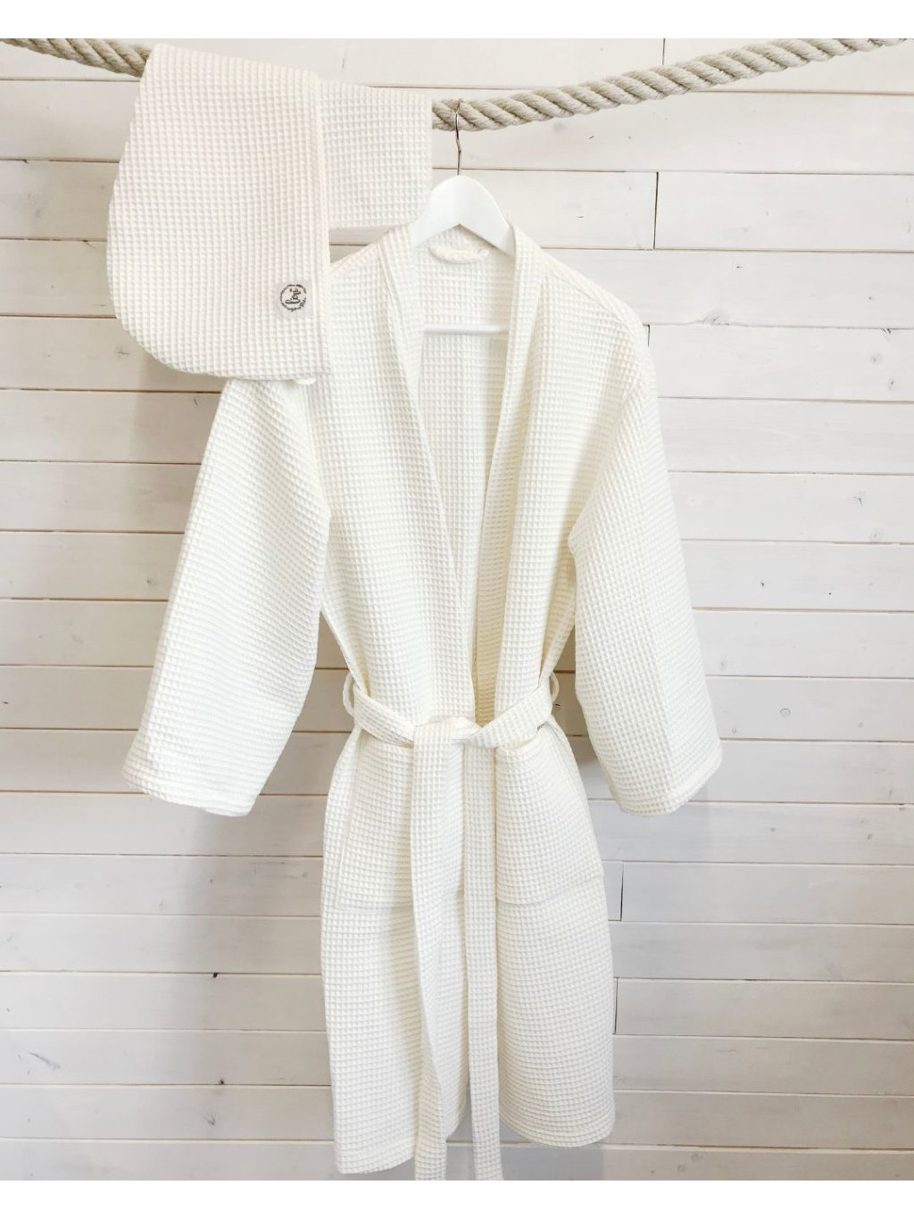Bavlněný WAFFLE župan bílý