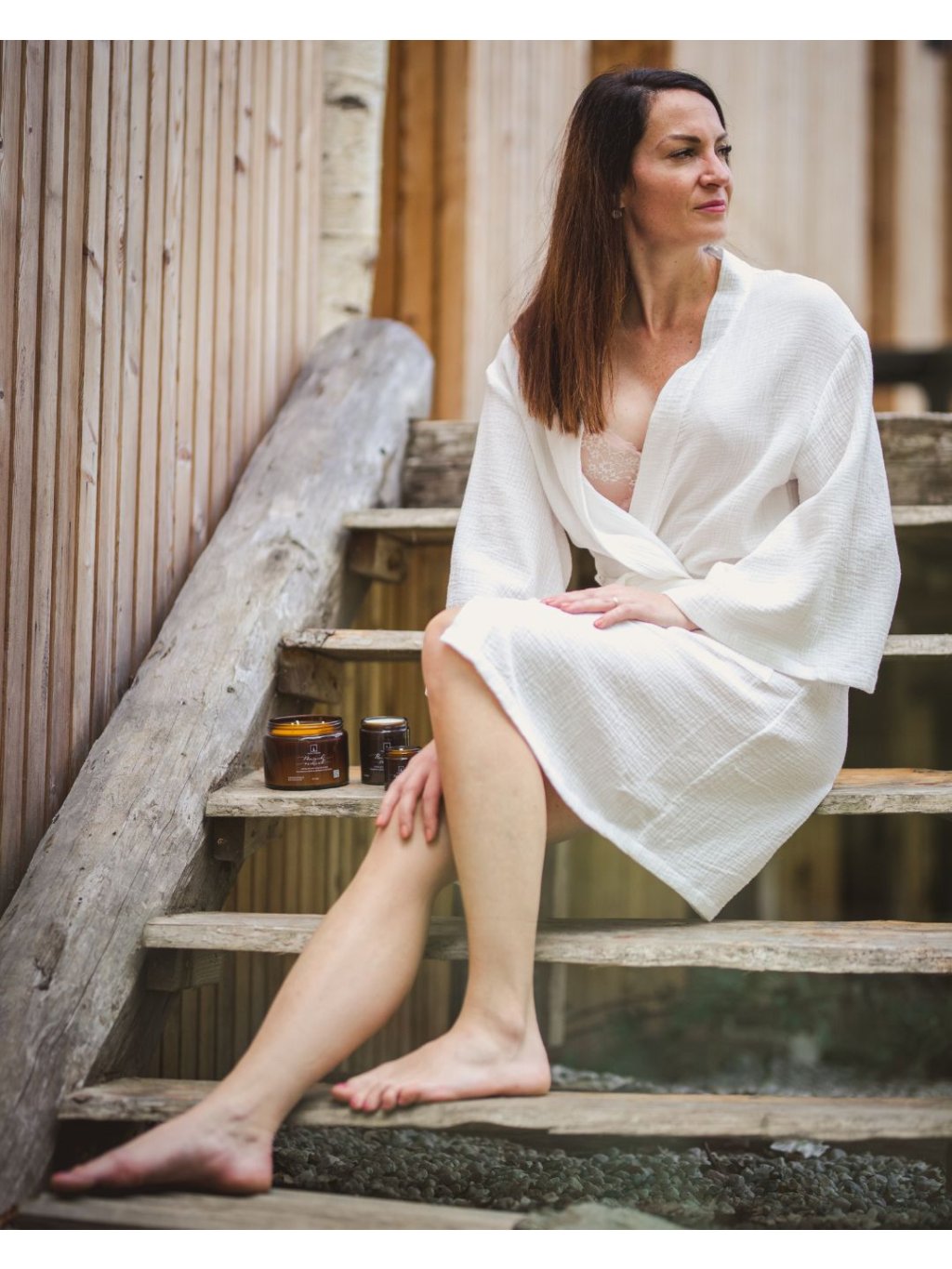 Mušelínový župan bílý