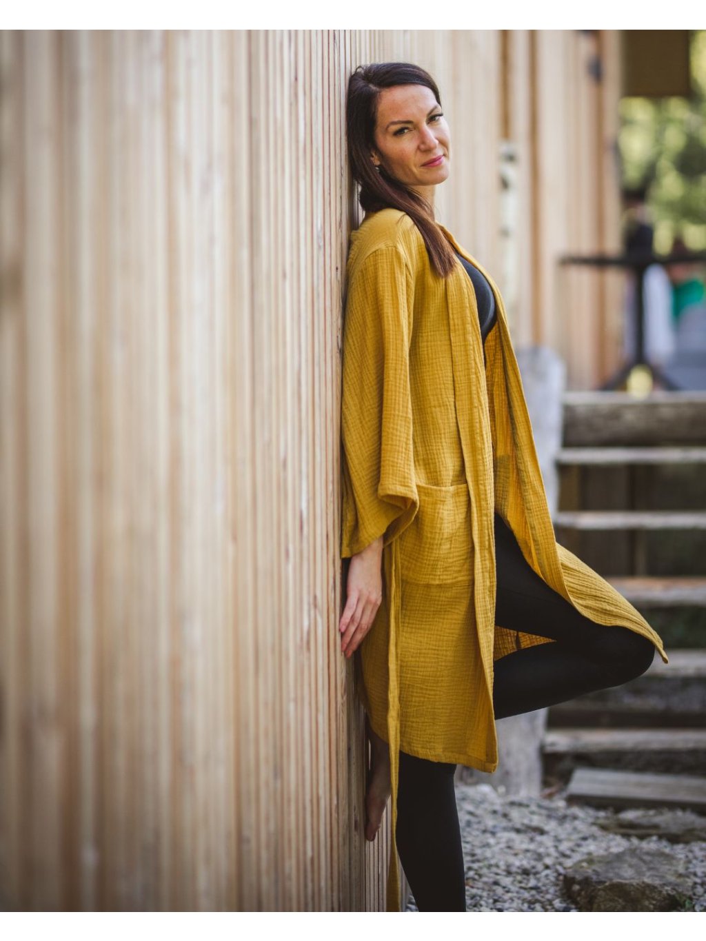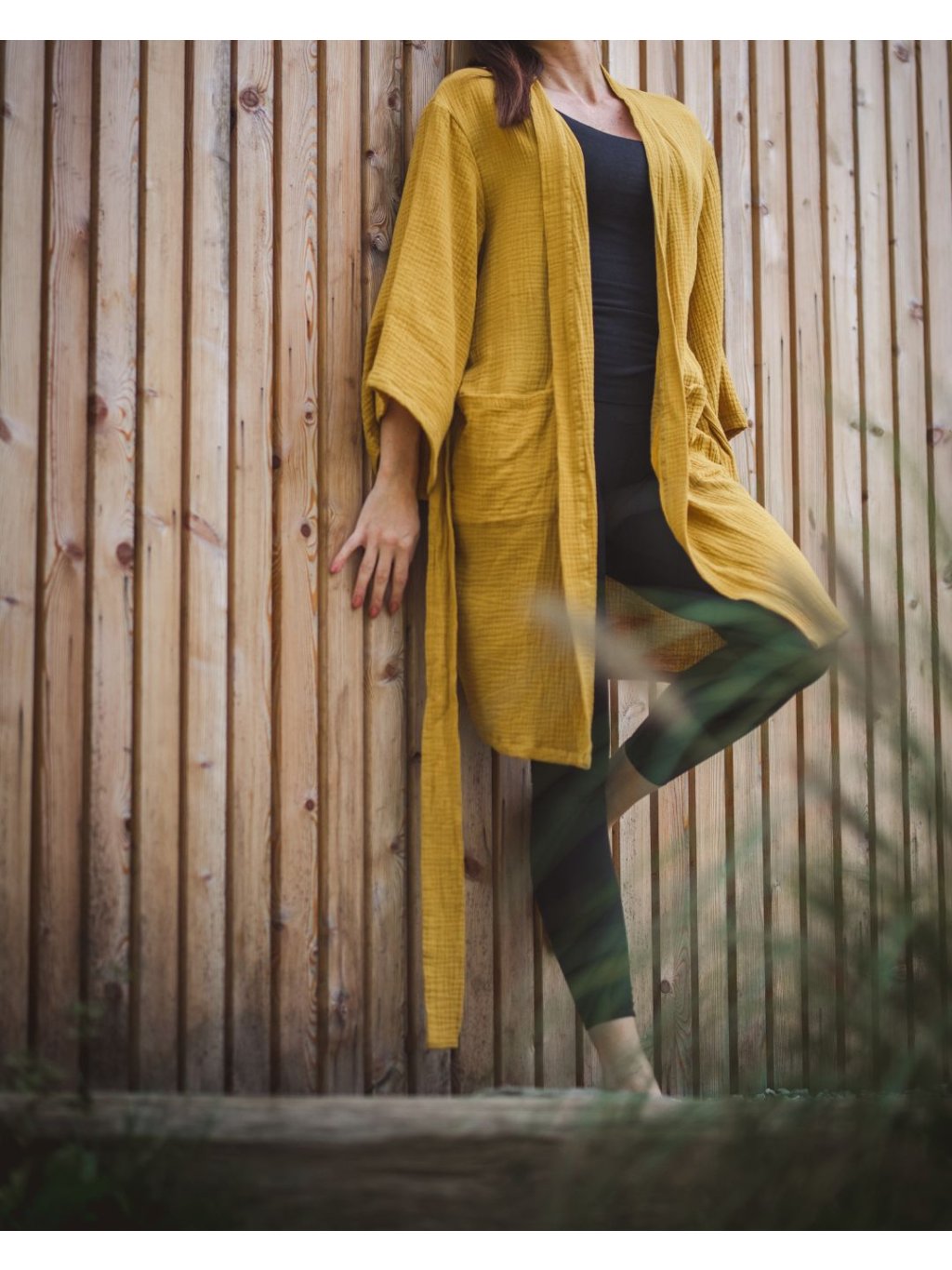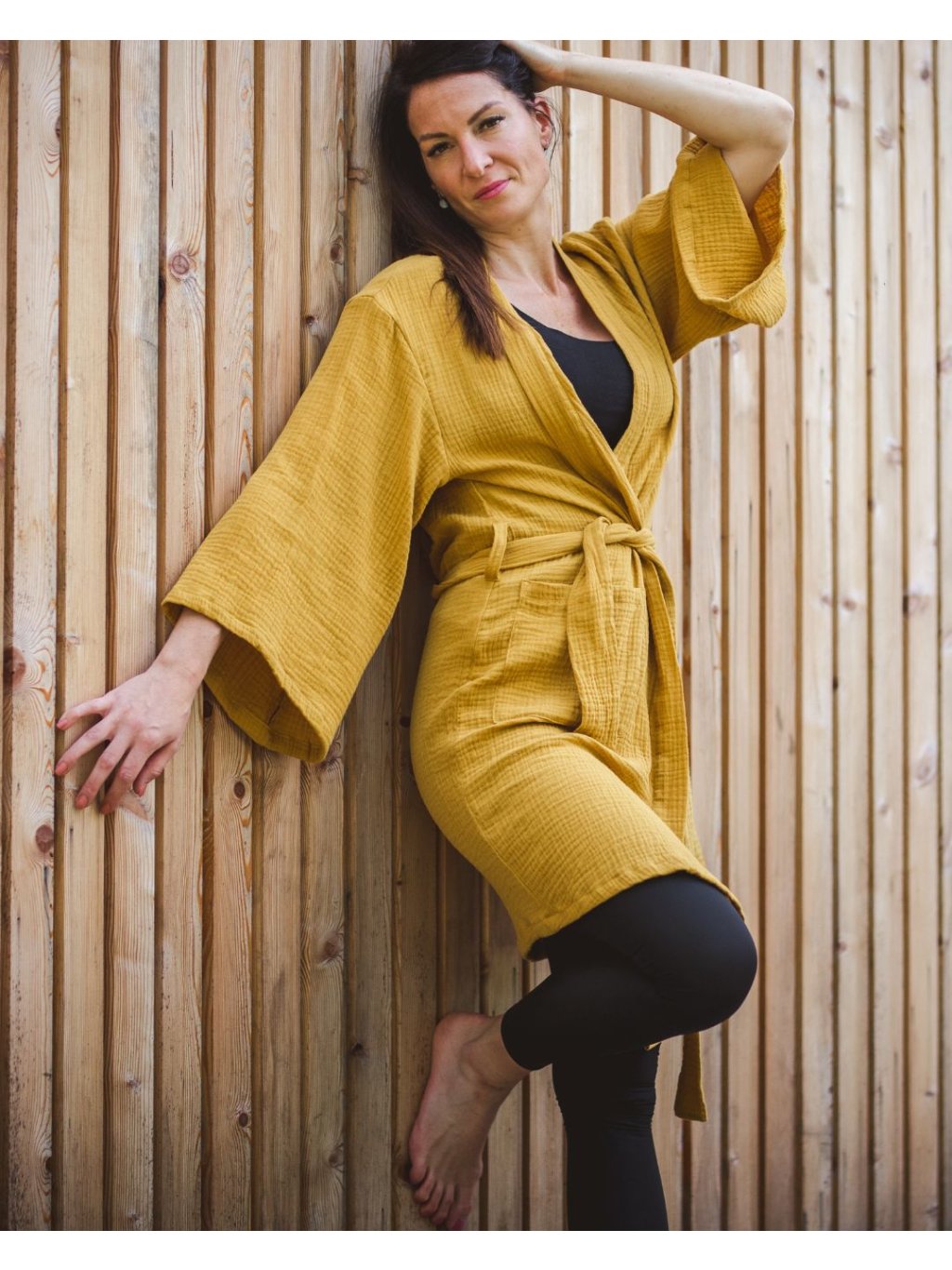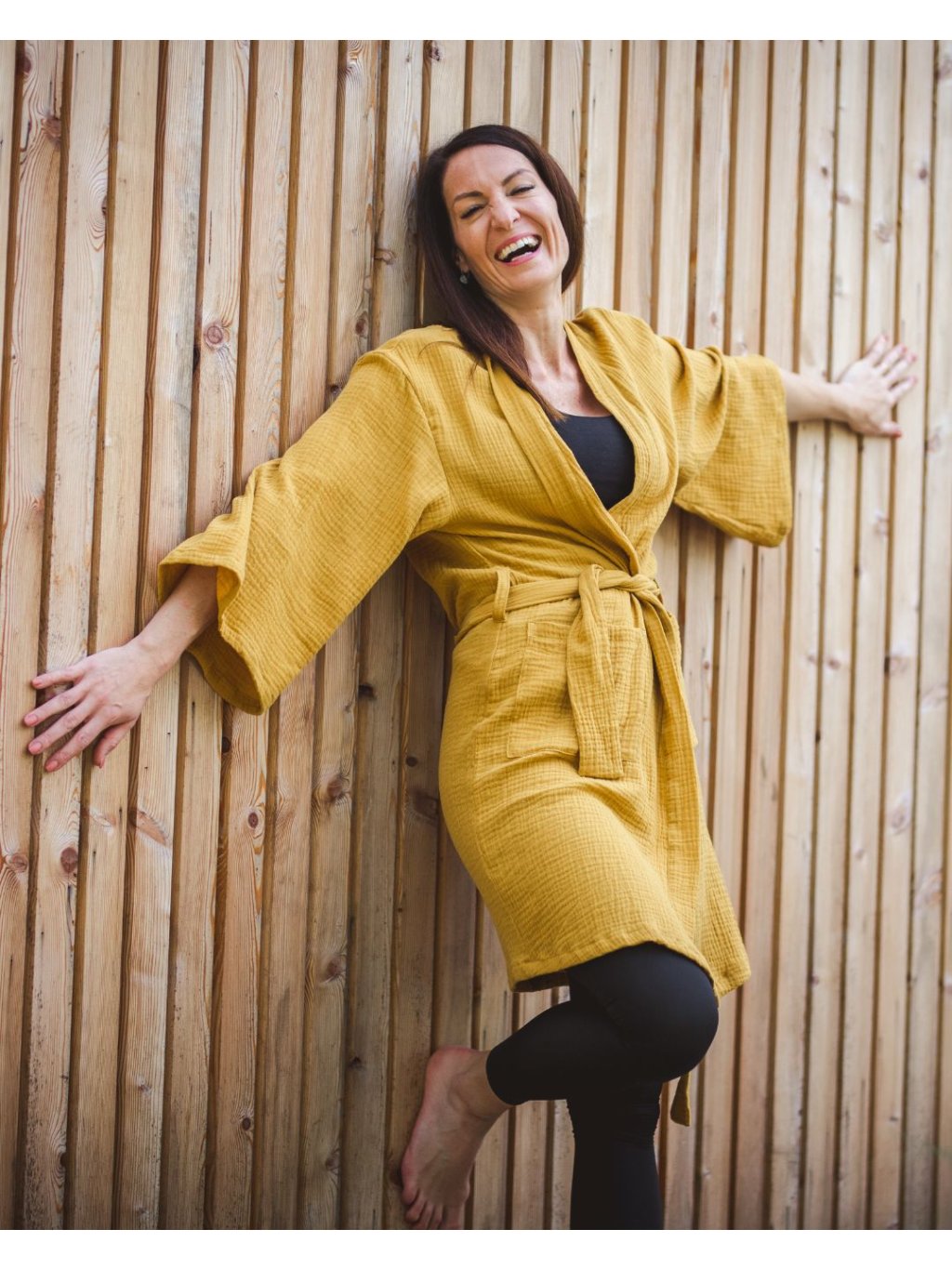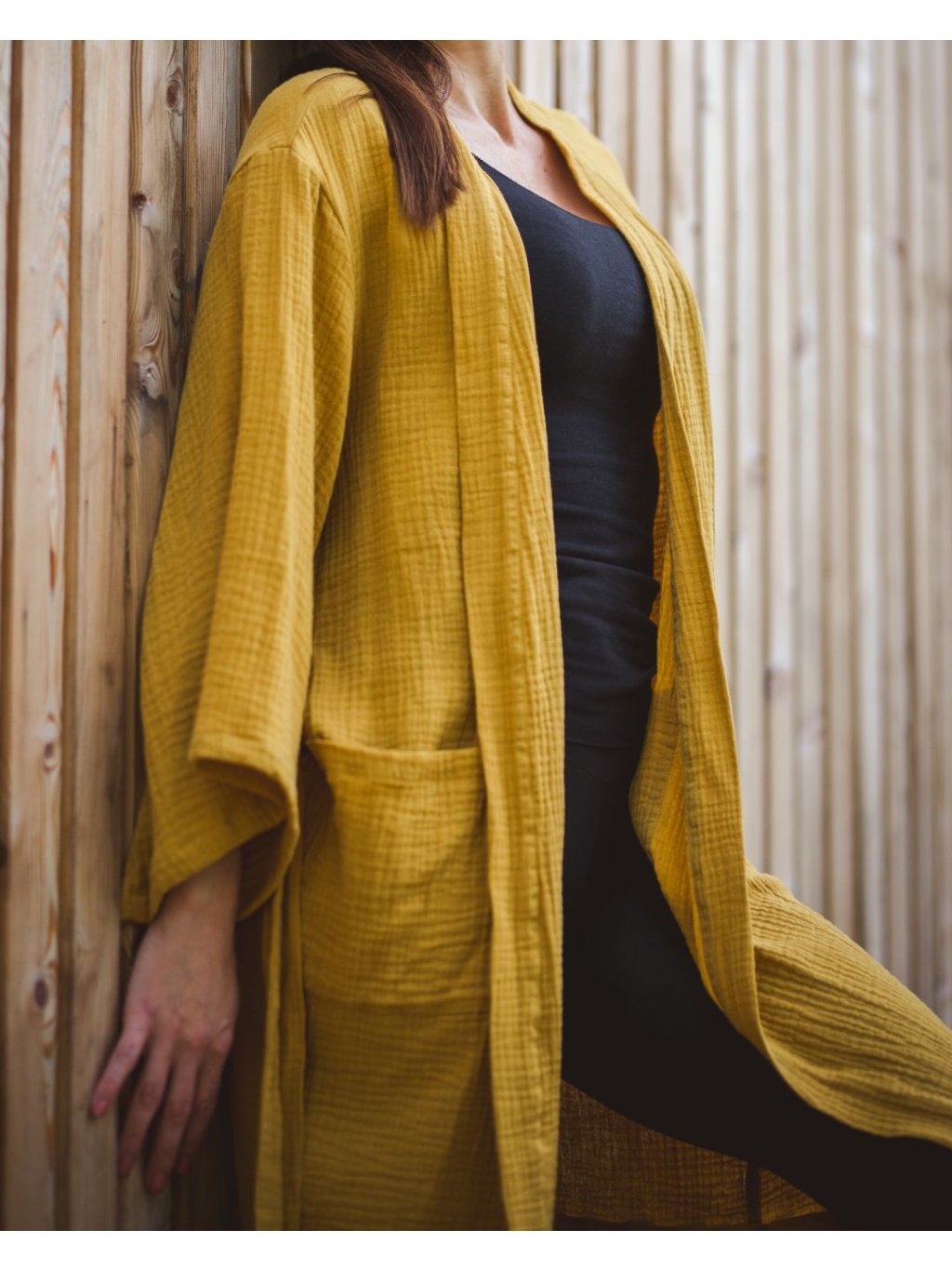 Mušelínový župan okrový